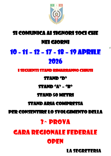 • 15-16-22-23 novembre: 2° prova di qualificazione per l’Ammissione alla Finale del Campionato d’Inverno (solo discipline aria compressa) – TSN Treviso e Vicenza